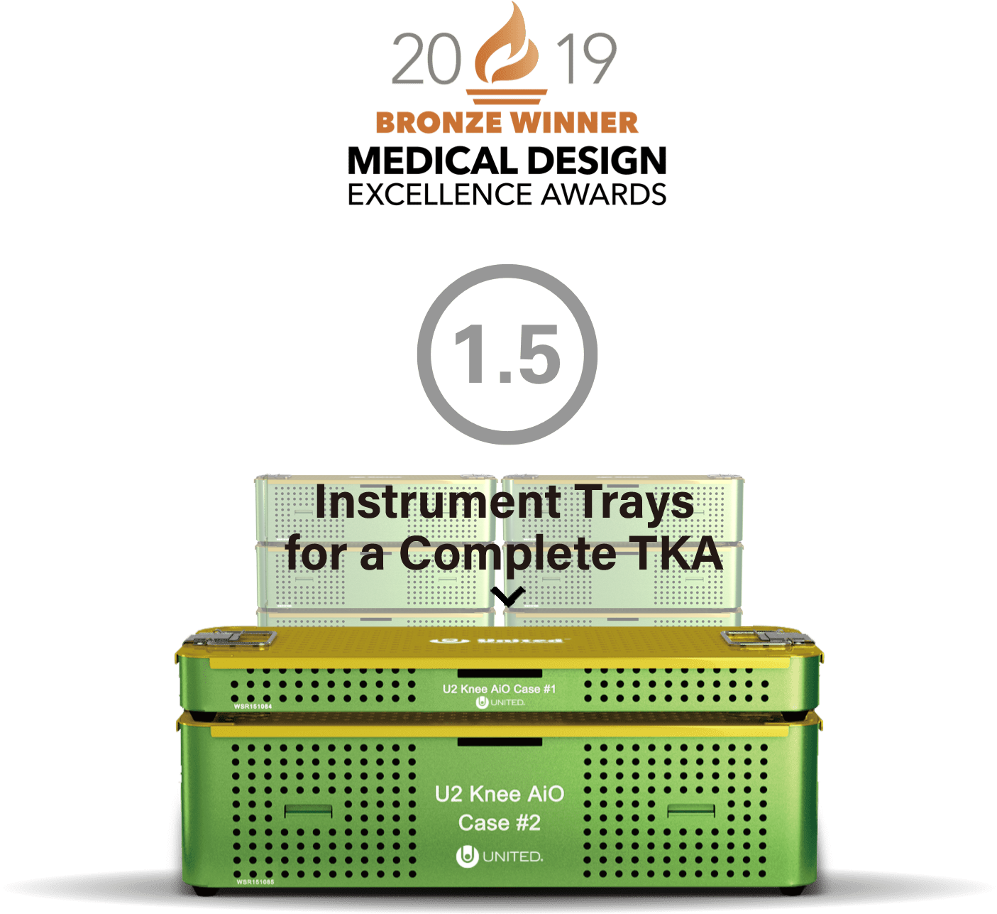 When using the U2 Knee System’s AiO Block and MDT Implant Trials together, the number of required instrument trays can be reduced from 6 to 1.5.