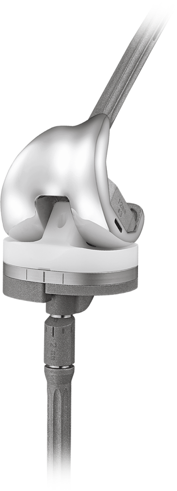 The femoral component is designed to allow up ± 3.7° of internal/external rotation.