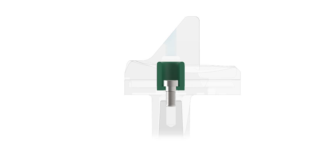 A Built-in reinforcement metal bushing and locking screw within the tibial insert extends into the baseplate. Designed to provide additional structural support and to against shearing force from the femur.