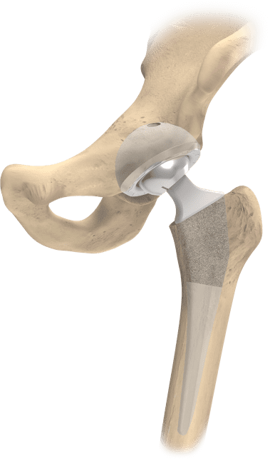 Hip replacement surgery is the second most common joint replacement surgical procedure 2. In a total hip replacement surgery, the surgeon removes the femoral head on top of the proximal femur and the damaged cartilage in the acetabulum. After these areas are removed, the surgeon replaces them with medical implants that replicate the hip joint so that the new artificial joint is designed to perform the motion and function of the natural hip without pain or compromise.